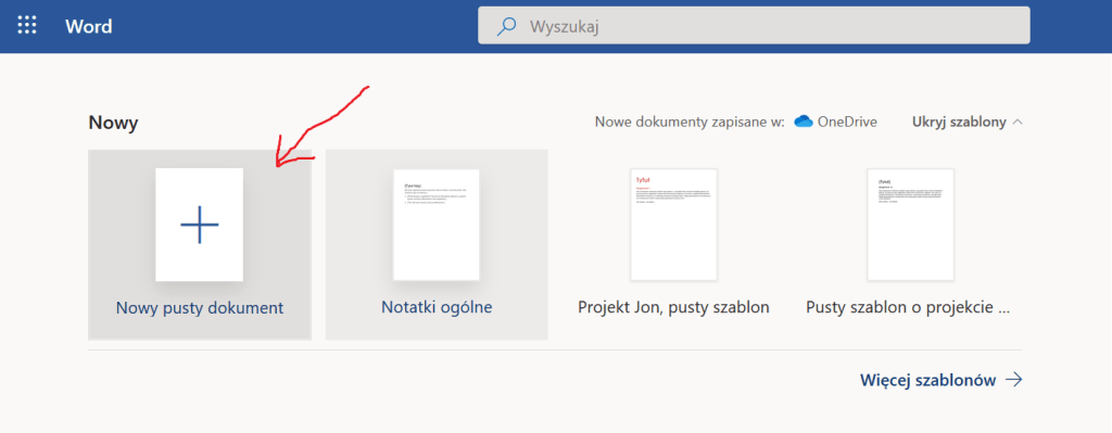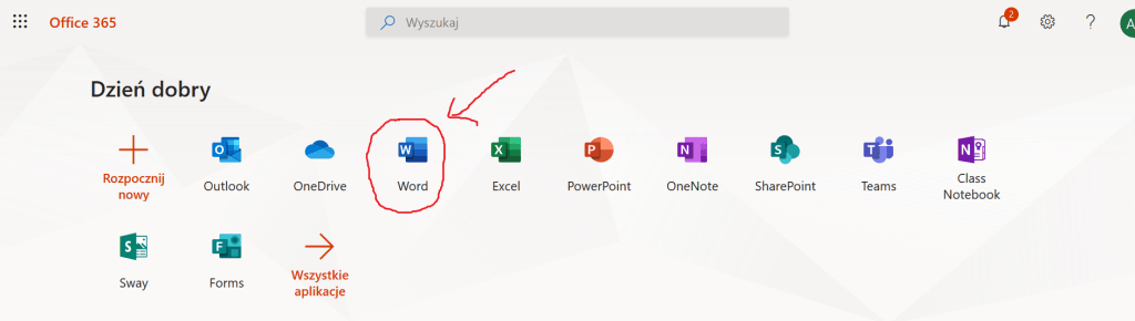 Po zalogowaniu się do pakietu OFFICE 365, wybierz aplikację WORD