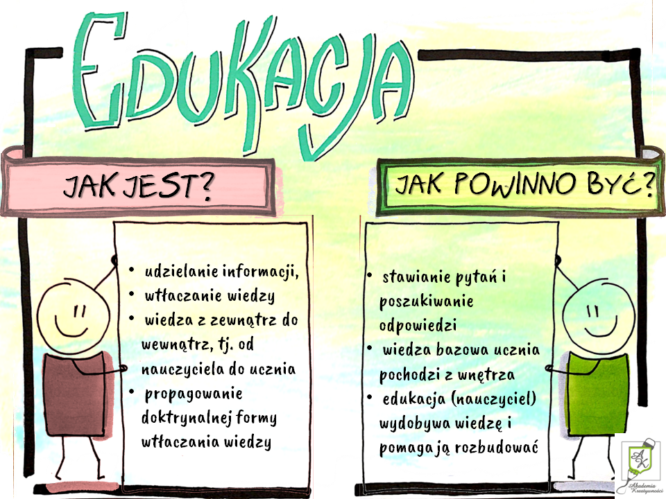 Edukacja. Wydawałoby się, że każdy, kto kiedykolwiek miał z nią coś wspólnego, staje się ekspertem w temacie. Wszyscy mamy w podświadomości określony model, wzór edukacji. Klasa. Nauczyciel przy biurku, mówi, naucza, przekazuje wiedzę. Z drugiej strony uczniowie usadzeni w ławkach, zobligowani do czterdziestopięciominutowej aktywności. Słuchają, a więc się uczą. Jeśli proces zakończy się sukcesem, tzn., dziecko otrzyma satysfakcjonującą jego i rodziców ocenę, oznacza to, że nauczyciel dobrze wykonał swoją pracę. Znajomo brzmiący opis? Pewnie dla wielu. Edukacja to jednak zdecydowanie więcej, niż tylko transmitowanie treści.